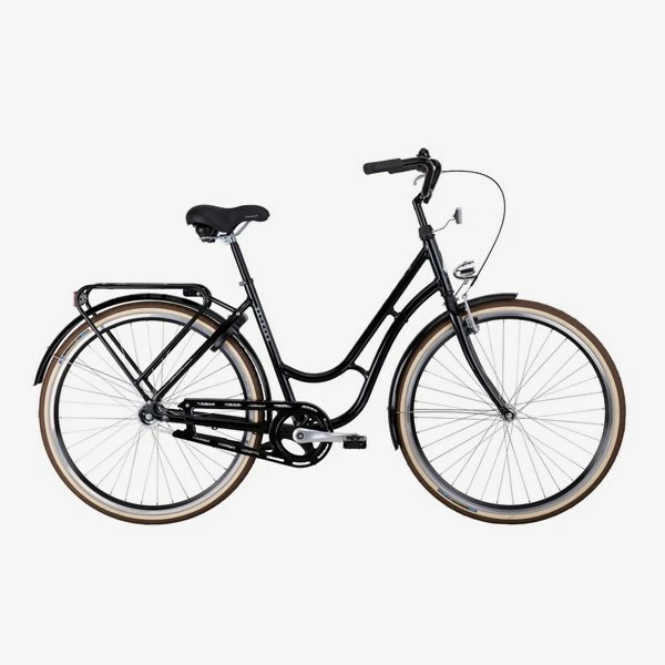 Enkelheten är finessen med denna variant av sveriges populäraste damcykel. Karin utan växlar kräver inte mer än en översyn då och då för att rulla som en stadig trotjänare i många år. Med en klassisk hängmatteram i aluminium, och däck som rullar skönt och lätt, blir varje tur på denna cykel angenäm. En bekväm sadel och ergonomiska handtag gör Karin till en skön cruiser, på väg hem från festen, på utflykt eller till affären. Rejäla skärmar i plåt, pakethållare med AVS-klickfästen för väskor, lås, stöd, ringklocka, reflexer och belysning, gör sig denna cykel i alla väder och oavsett kläder.