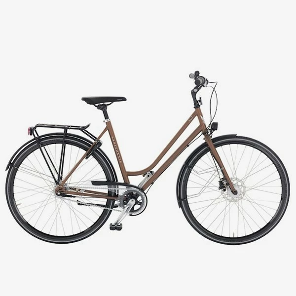Den tillförlitliga drivlinan utgörs av en lätthanterlig navväxel som levererar smidiga och exakta växlingar. Dess 7 inkapslade växlar kommer från Shimano (Nexus) och levererar näst intill felfri funktion, ett brett växelomfång och de kräver dessutom ett minimum av underhåll. Växlarna styrs via ett lättmanövrerat vridreglage som ger dig möjligheten att skifta mellan växlarna utan att det känns det minsta ansträngt. Det är ett föredömligt smidigt växelsystem som hjälper till att skydda cykelns drivlina mot smuts, fysisk åverkan och även vädrets makter.