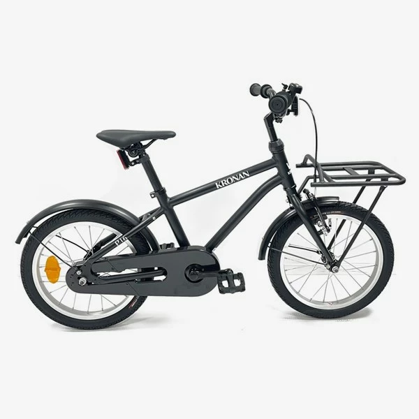 Letar du efter en robust liten juniorcykel med modern design och pålitlig prestanda så är den eleganta Kronan P16 ett riktigt smart alternativ. En okomplicerat modell med generöst lastutrymme där både helheten och varje liten detalj andas kvalitet och smart funktionalitet. Vid sidan av ett tufft yttre så prioriteras såklart säkerheten och modellen har pålitliga bromsar och är såklart utrustad med både reflexer och ringklocka som ser till att cyklisten både hörs och syns. Det här är en kvalitativ liten barncykel som fungerar lika bra för avslappnade turer till och från lekparken som för lite mera äventyrlig cykling med resten av familjen. En bekväm modell med klassisk färgsättning, raka linjer och en bekväm körställning som skapar en tydlig vy över omgivningen, vilket kan vara praktiskt när medtrafikanterna utgörs av en massa halvgalna fartdårar. Ett gediget väderskydd, beprövade komponenter och en snygg svart lack som står emot det mesta gör att den både tål att användas och ärvas vidare bland släkt eller vänner.